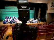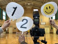 出張撮影2件めは学校でした。 大きな声を出さなくてもいいように手作りしましたよ。 どうやら好評。